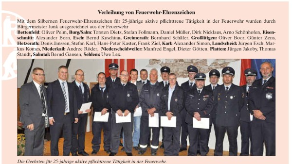 Geehrt für 25 jährige aktive pflichttreue Tätigkeit in der Feuerwehr